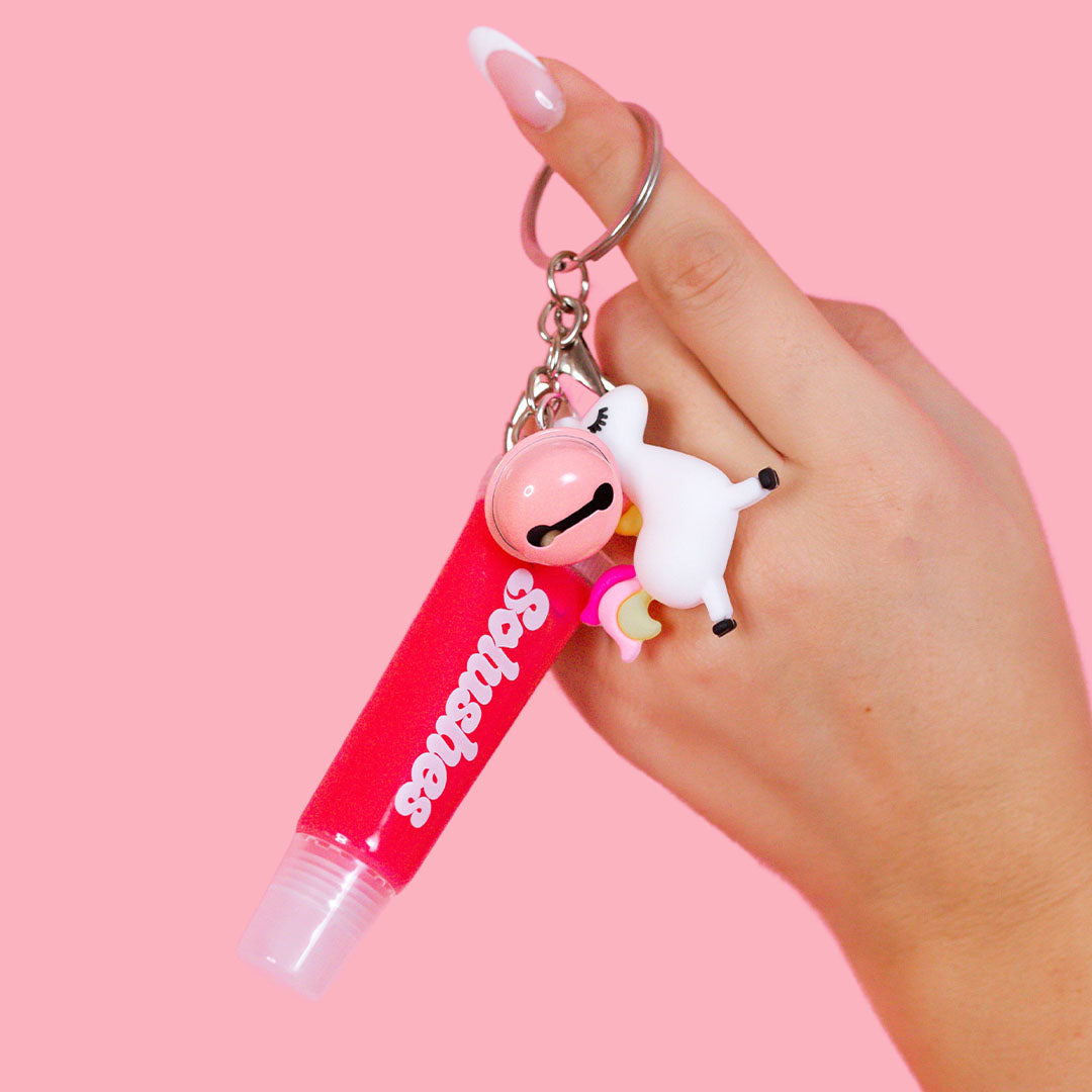 Keep your lip gloss secure with this fun, charming unicorn shaped keychain. Perfect for on-the-go and adding a little magic to your day.