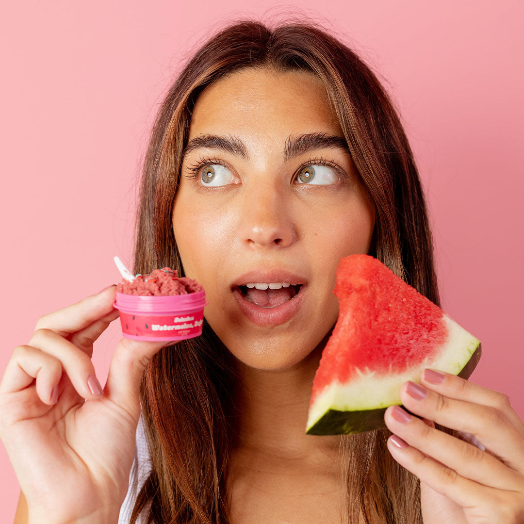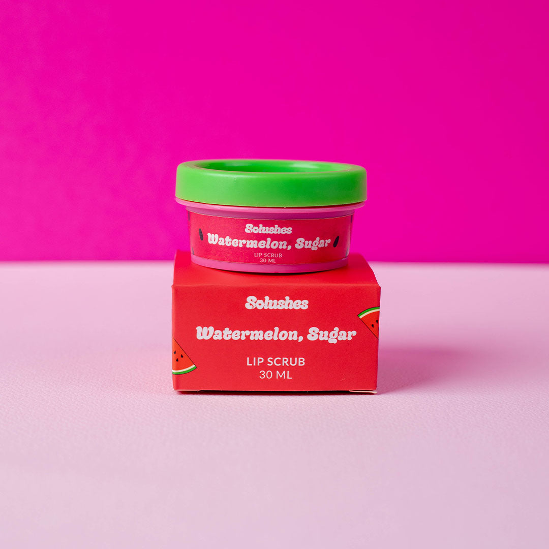 Naturally exfoliate your lips with Solushes Watermelon Sugar Lip Scrub.