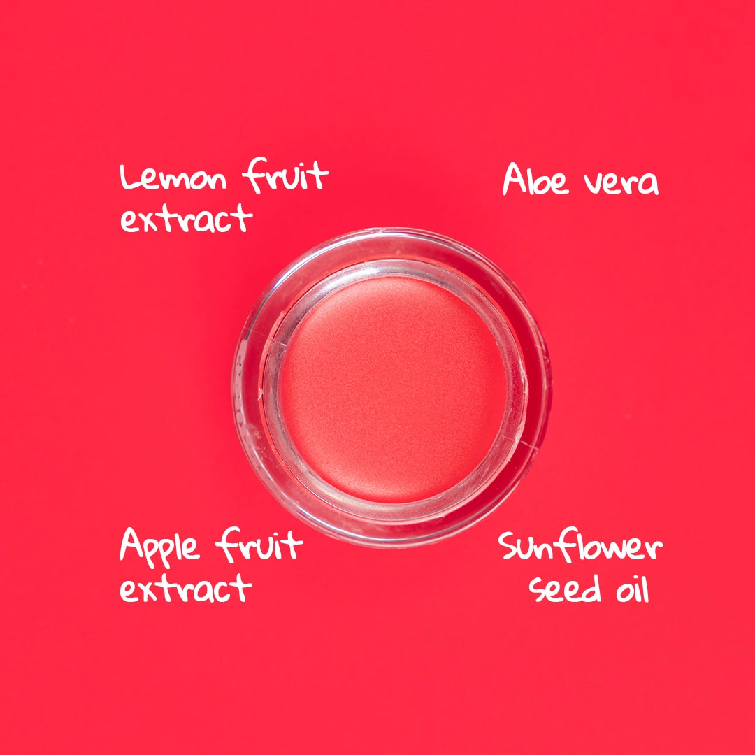 Earth Wax, Microcrystalline Wax, Ethylhexyl Palmitate, Paraffinum Liquidum, Silica Dimethyl Silylate, Polyisobutene, Pyrus Malus (Apple) Fruit Extract, Carthamus Tinctorius (Safflower) Seed Oil, Helianthus Annuus (Sunflower) Seed Oil, Aloe Barbadensis Extract, Glycine Soja (Soybean) Oil, Citrus Limon (Lemon) Fruit Extract, Phenoxyethanol, Cherry Parfum, Cl 77491